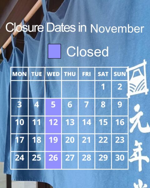 Looking forward to serving you on other days with our 100% buckwheat soba and seasonal dishes!